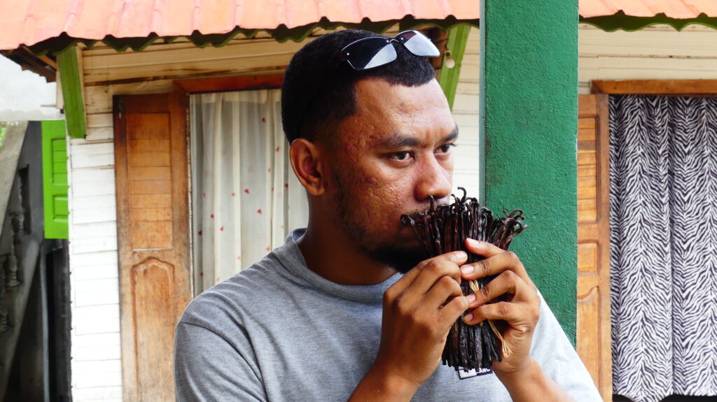 “À Maroantsetra, nous cultivons avec passion une vanille d’exception. Chaque gousse est le fruit d’un travail minutieux et respectueux de la nature, reflétant la richesse de notre environnement et le savoir-faire ancestral de notre communauté. Nous sommes fiers de partager avec vous cette vanille Bourbon, symbole de qualité et d’authenticité,”