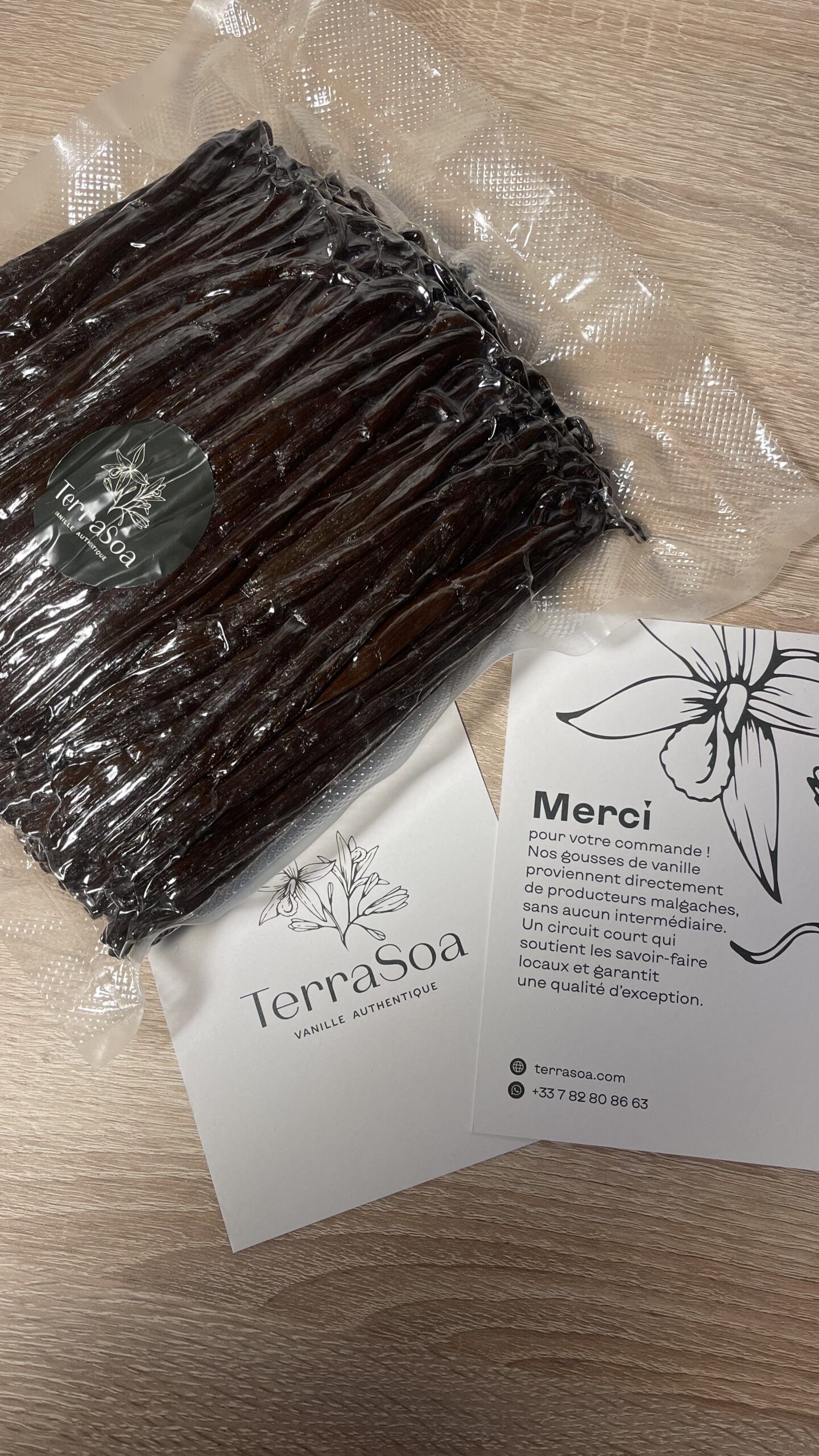 Chaque gousse est récoltée à pleine maturité, puis affinée lentement selon les méthodes traditionnelles. Ce processus permet d’obtenir une vanille aux notes chaudes, florales et boisées, idéale pour les professionnels de la pâtisserie, de la restauration et de l’agroalimentaire.